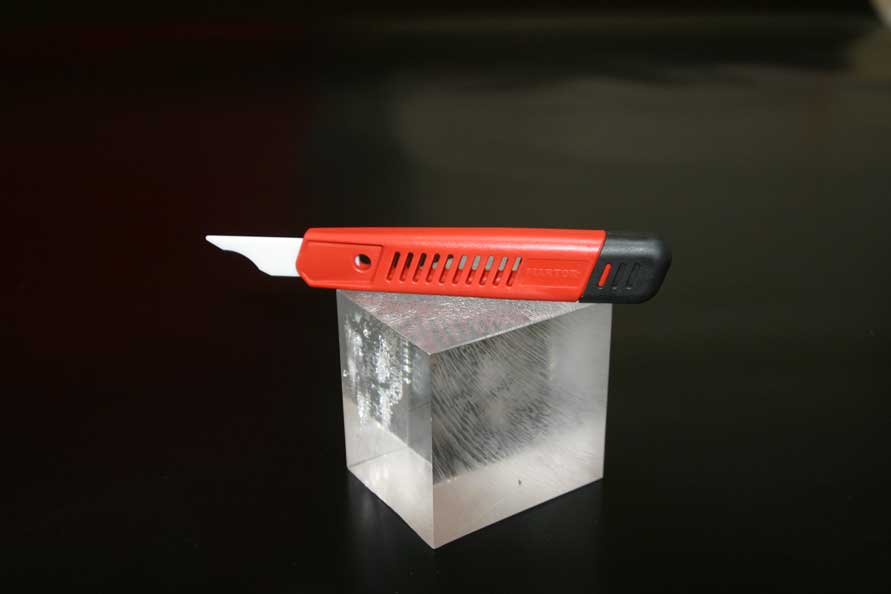 | Firme cúter con hoja de cerámica recta ensamblada en mango de plástico. Especialmente adecuado para desbarbar material plástico y metales blandos. Se adapta a la mano totalmente. Permite repasar formas cóncavas y convexas de una manera fácil. | ||