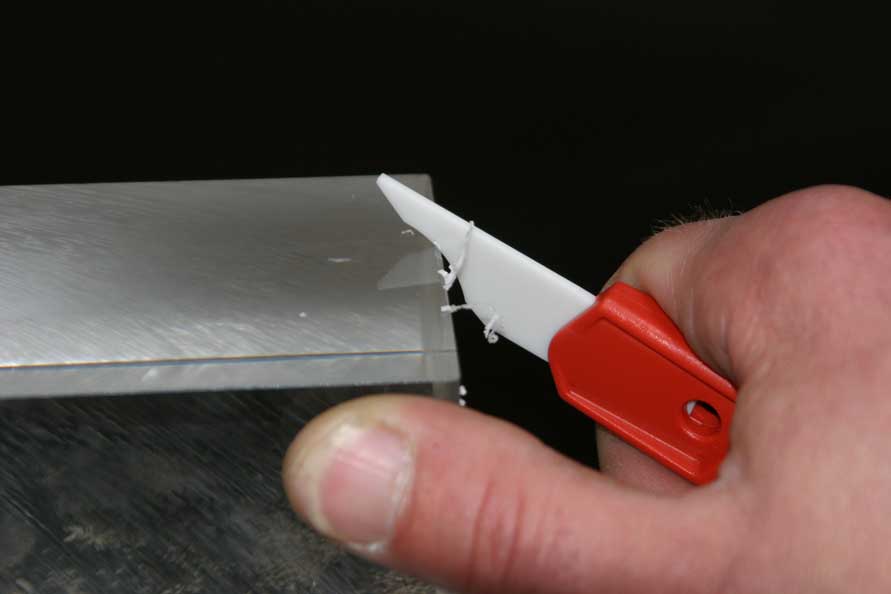 | Firme cúter con hoja de cerámica cóncava ensamblada en mango de plástico. Especialmente adecuado para desbarbar material plástico y metales blandos. Se adapta a la mano totalmente. Permite repasar formas cóncavas y convexas de una manera fácil. | ||