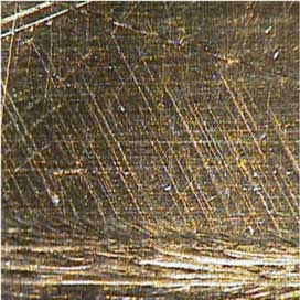 Hoja de un cuchillo de cerámica, de segunda mano, en óxido de zirconio ZrO2, aumentada 32 veces.